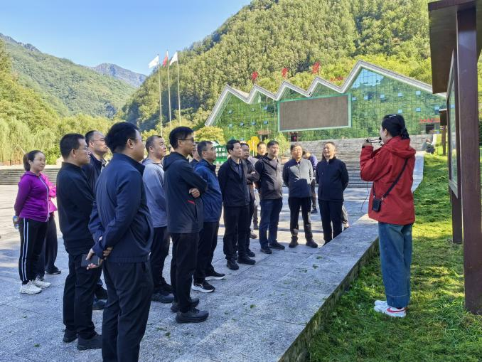 9月的秦岭,层峦尽染,秋山如绘。站在牛背梁生态主题广场,五年前习近平总书记的嘱托言犹在耳,声声回响。全体学员们认真聆听工作人员讲解,重温习近平总书记关于当好秦岭生态卫士的重要指示精神,深切感受习近平总书记“绿水青山就是金山银山”这一重要论断的科学内涵和深远意义。随后,大家走进羚牛谷,沿着习近平总书记考察时的路线一路前行,系统了解牛背梁区域的地形地貌、森林生态、生物多样性保护成果,特别是其在涵养水源、调节气候、维护秦岭整体生态平衡中不可替代的作用。大家凝神倾听,深入交流,对“秦岭是国家中央公园,是我国的‘中央水塔’”这一战略定位有了更为具象和深刻的理解。