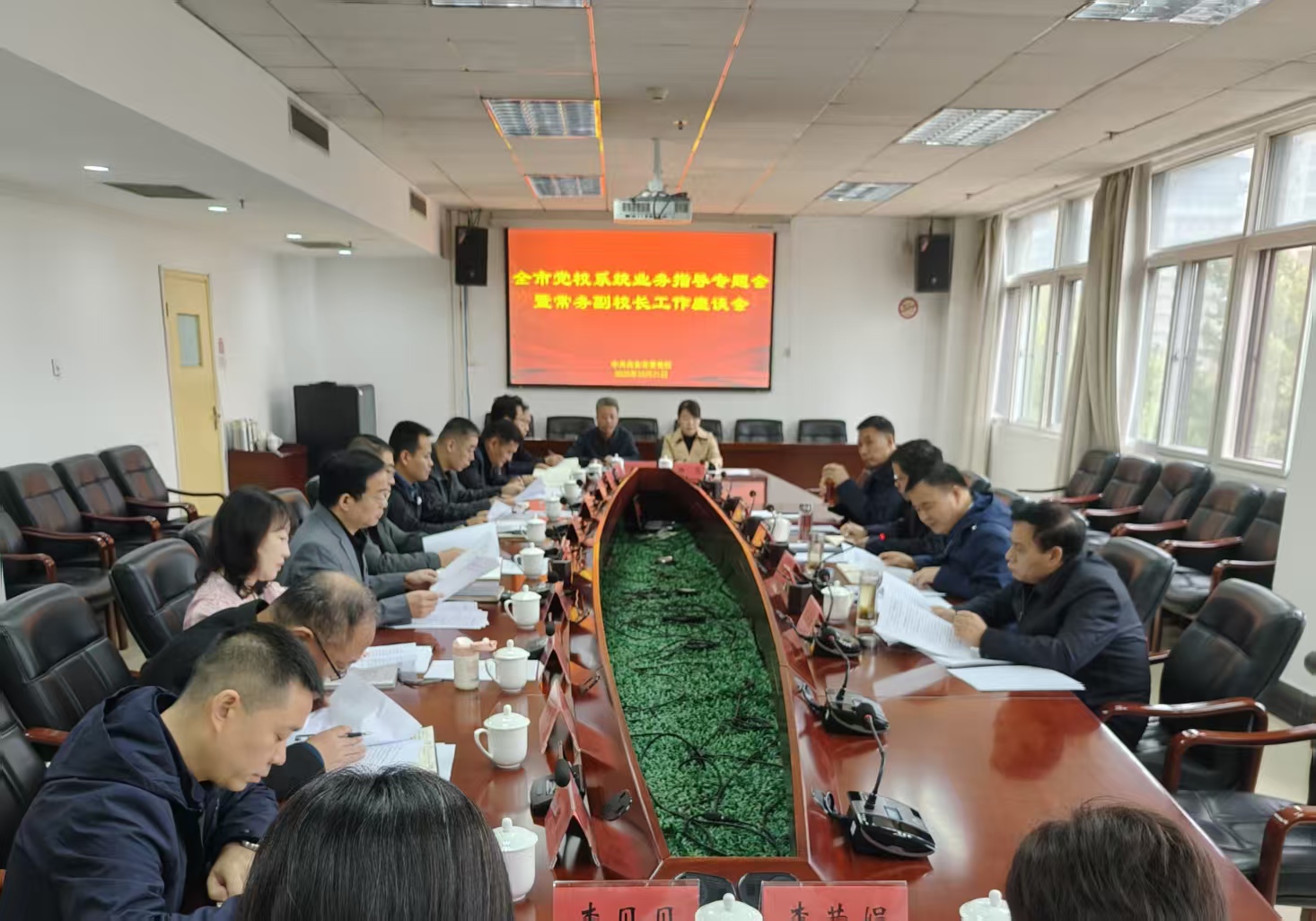 会议要求,要抢抓机遇,借势提升。全市党校系统要紧抓当下难得机遇,聚力做好基本培训,统筹推进分类建设,全面提升办学质量和水平。要全面对标,重点突破。以习近平总书记指示精神和《条例》为遵循,逐条对照查摆问题、理清原因、提出对策,特别是对影响基本培训落实的关键问题要重点突破。要立足实际,分类推进。结合自身实际和干部队伍特点,以分类建设要求为牵引,远近结合做好工作规划,立足优势找准发展“主赛道”。要强化联动,资源共享。以“市县贯通、片区融合”为目标构建市域“大党校”,以“一县一策、一校一品”为基础形成联动“大格局”,不断完善“市区一体办学、区县联合办班”协作新路径,进一步实现全市党校系统优质办学资源共建共享。要市区协力,共同推进。各党校要对制约高质量发展的问题和意见全面梳理、准确分类,及时向党委汇报。全市党校系统要抢抓机遇、迎难而上,勠力同心、敢作敢为,切实为推动新时代党校事业高质量发展不懈奋斗。(撰稿:张云博、范溢纬/摄影:毛龙、张云博)