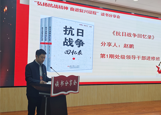 2025年是中国人民抗日战争暨世界反法西斯战争胜利80周年,为深入学习贯彻习近平总书记关于弘扬伟大抗战精神的重要论述,铭记历史、缅怀先烈,激发教职工和学员的爱国热情和使命担当,2025年11月10日,学员组织处和图书馆(信息中心)围绕“弘扬抗战精神 奋进复兴征程”开展主题读书分享活动。常务副校长张选民出席并致辞。来自第29期青干班、第1期处级领导干部进修班学员以及部分教职工齐聚一堂,以书为媒,重温烽火岁月,共话复兴使命。