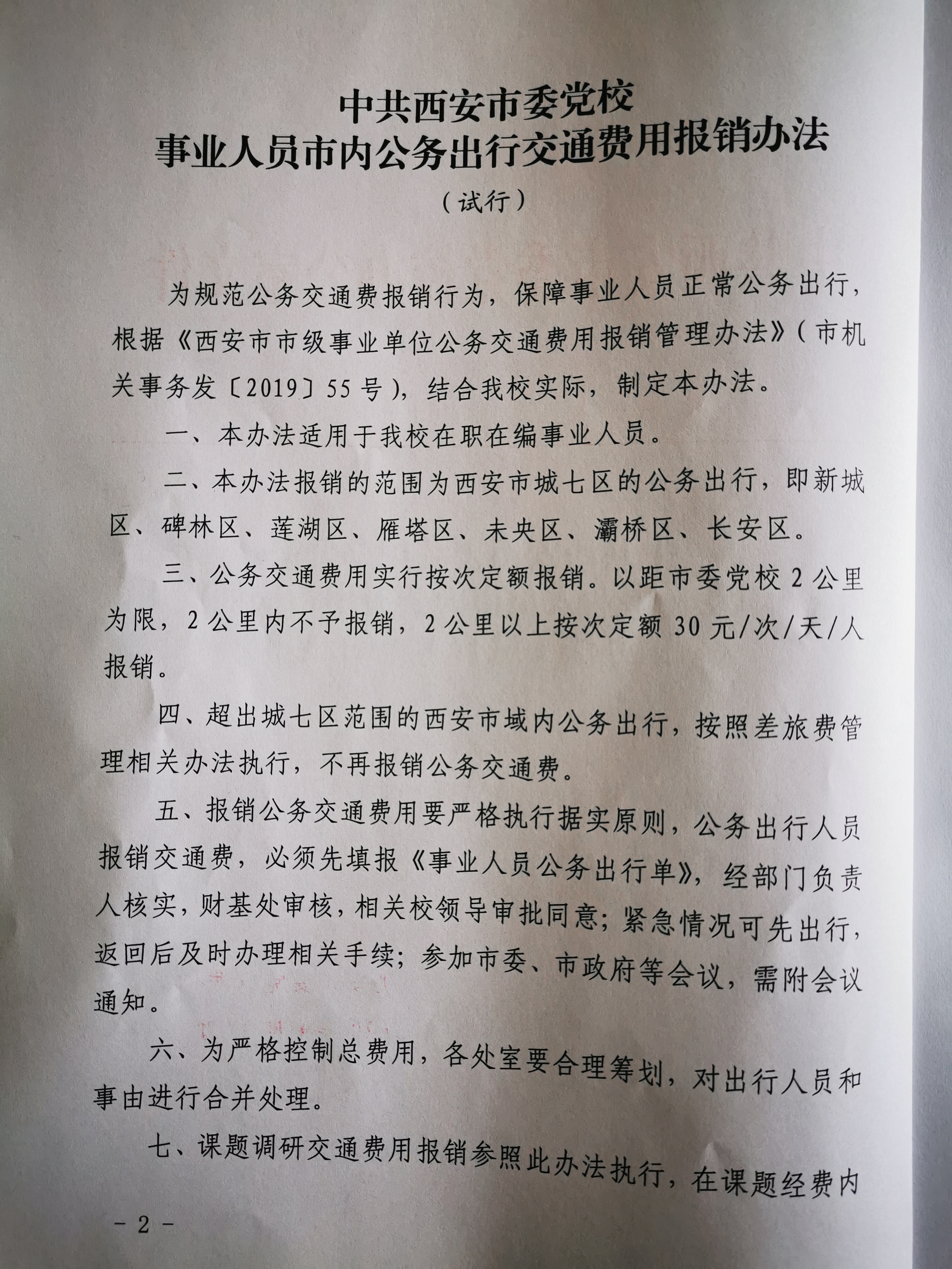 关于事业人员市内公务出行交通费用报销办法(试行)的通知(含附件)