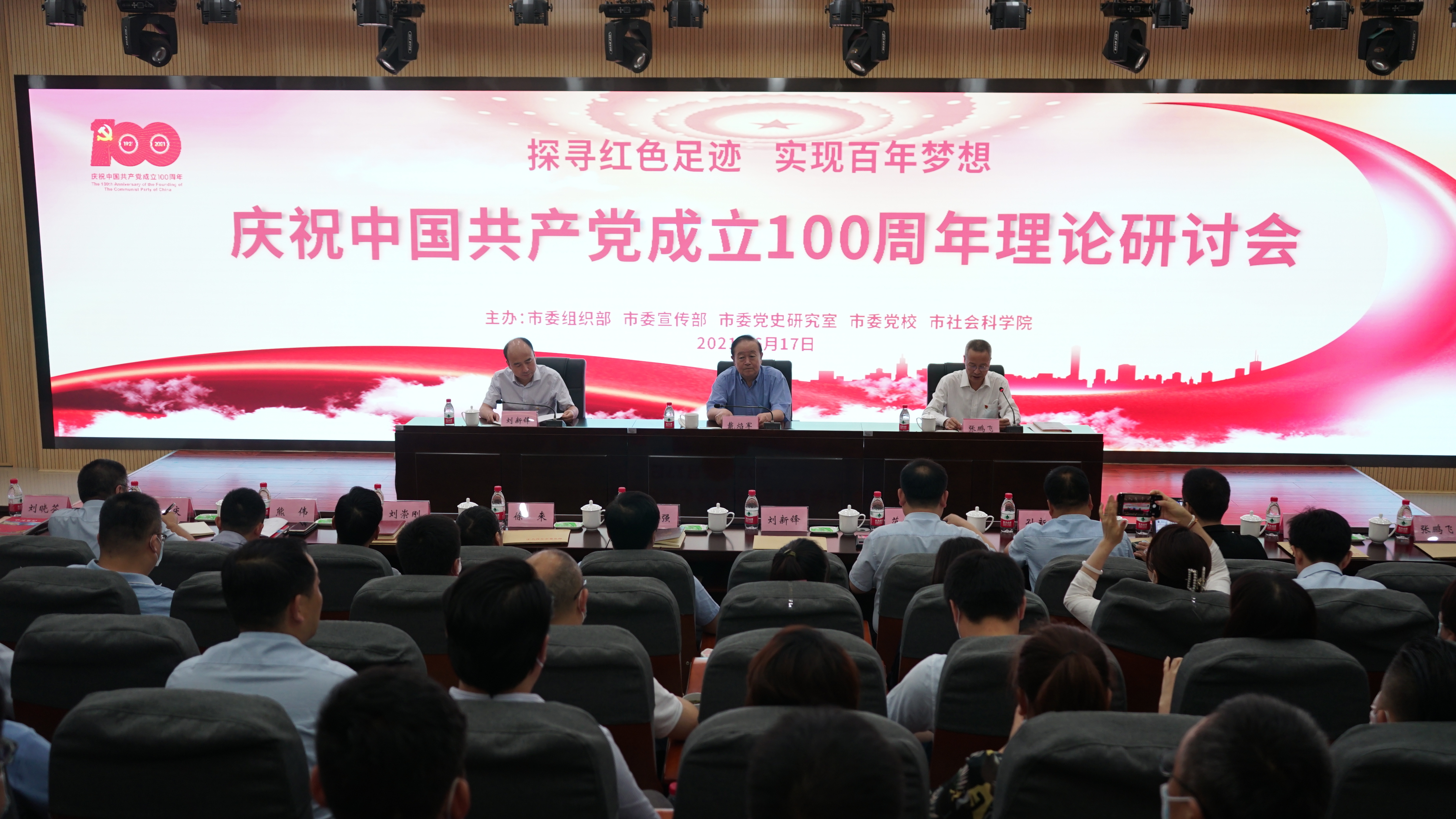 2021年6月17日,庆祝中国共产党成立100周年理论研讨会在我校召开。会议主题为“探寻红色足迹 实现百年梦想”。市委宣传部副部长、市新闻出版局(市版权局)局长刘新锋致开幕辞。会议由西安市委党校(行政学院)常务副校(院)长张鹏飞主持。