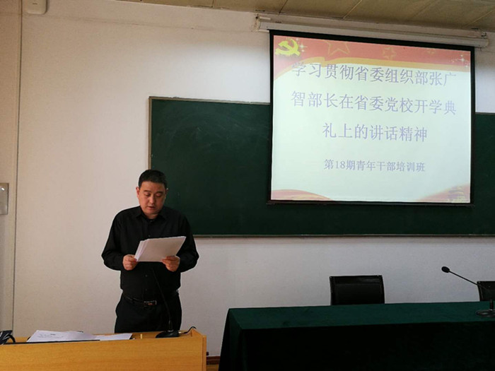班主任刘强全文传达了省委组织部部长张广智在省委党校开学典礼上的讲话精神,并要求学员以讲话精神为指引,切实提高和增强“八种本领”,为下一步更好的胜任本职工作做好知识储备。