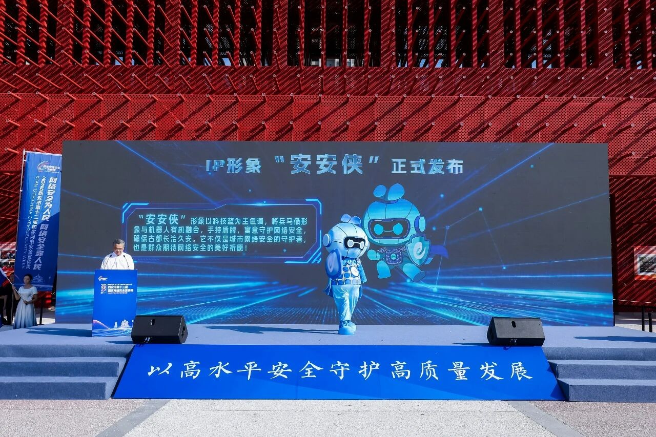 启动仪式上,备受瞩目的西安市网络安全形象大使“安安侠”正式对外发布。“安安侠”形象以“科技蓝”为主色调,将兵马俑形象与机器人有机融合,手持盾牌,寓意守护网络安全,确保古都长治久安。它不仅是城市网络安全的守护者,也是群众期待网络安全的美好祈愿,后续将通过动画、漫画、互动游戏等形式,广泛传播网络安全知识。