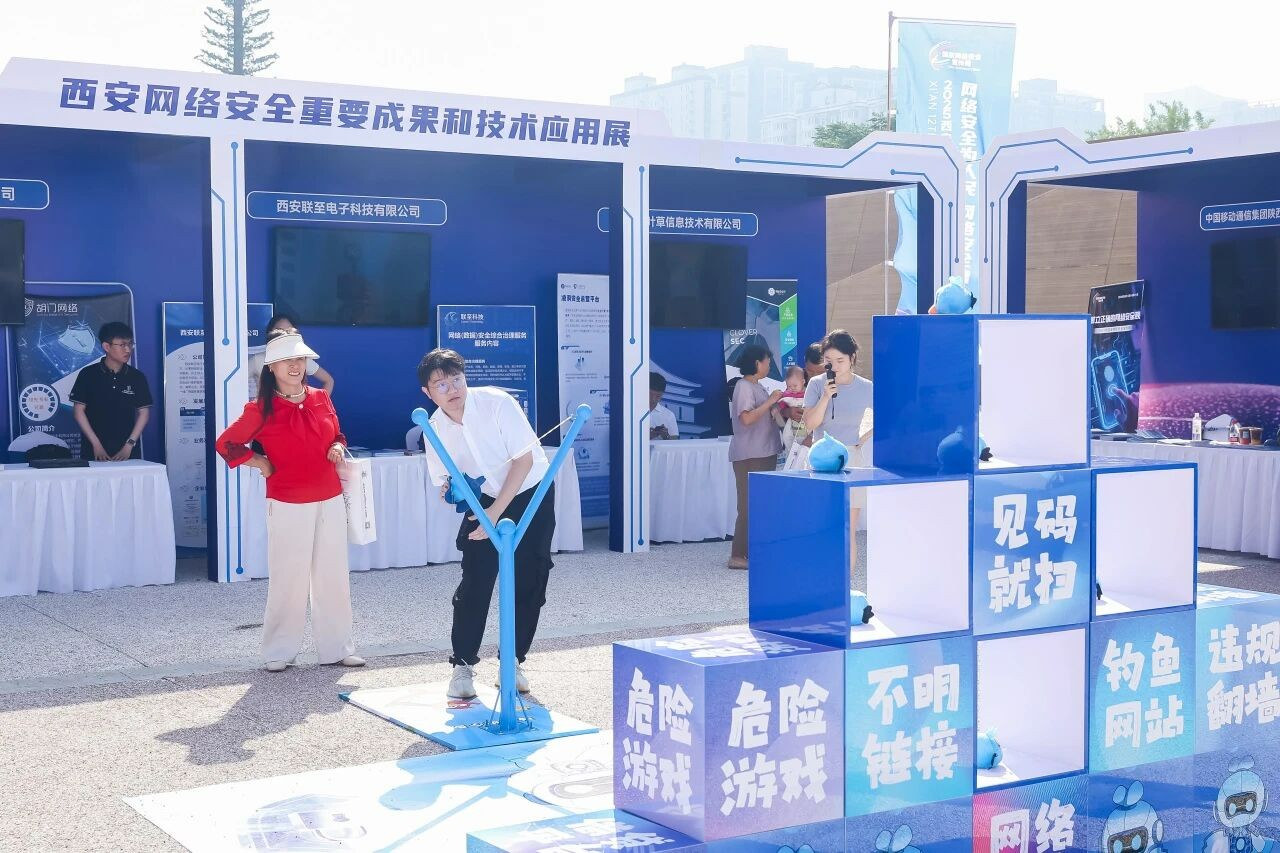 活动现场,企业应用展吸引众多目光。奇安信、亚信安全、启明星辰等20家企业展示了网络安全领域的前沿技术和创新应用,涵盖网络安全防护、AI-XDR体系化联动防御、人工智能安全检测等多方面。现场还进行实时监测网络攻击、模拟数据加密和解密过程等技术演示。互动体验区设置了网络安全知识问答、模拟网络攻防等环节,使市民群众在游戏中学习如何识别AI变脸、社工钓鱼、银狐病毒等网络安全常识,增强网络安全意识和个人防护技能。让参观的市民群众直观感受网络安全技术对生活的保障作用,现场氛围人气火爆。